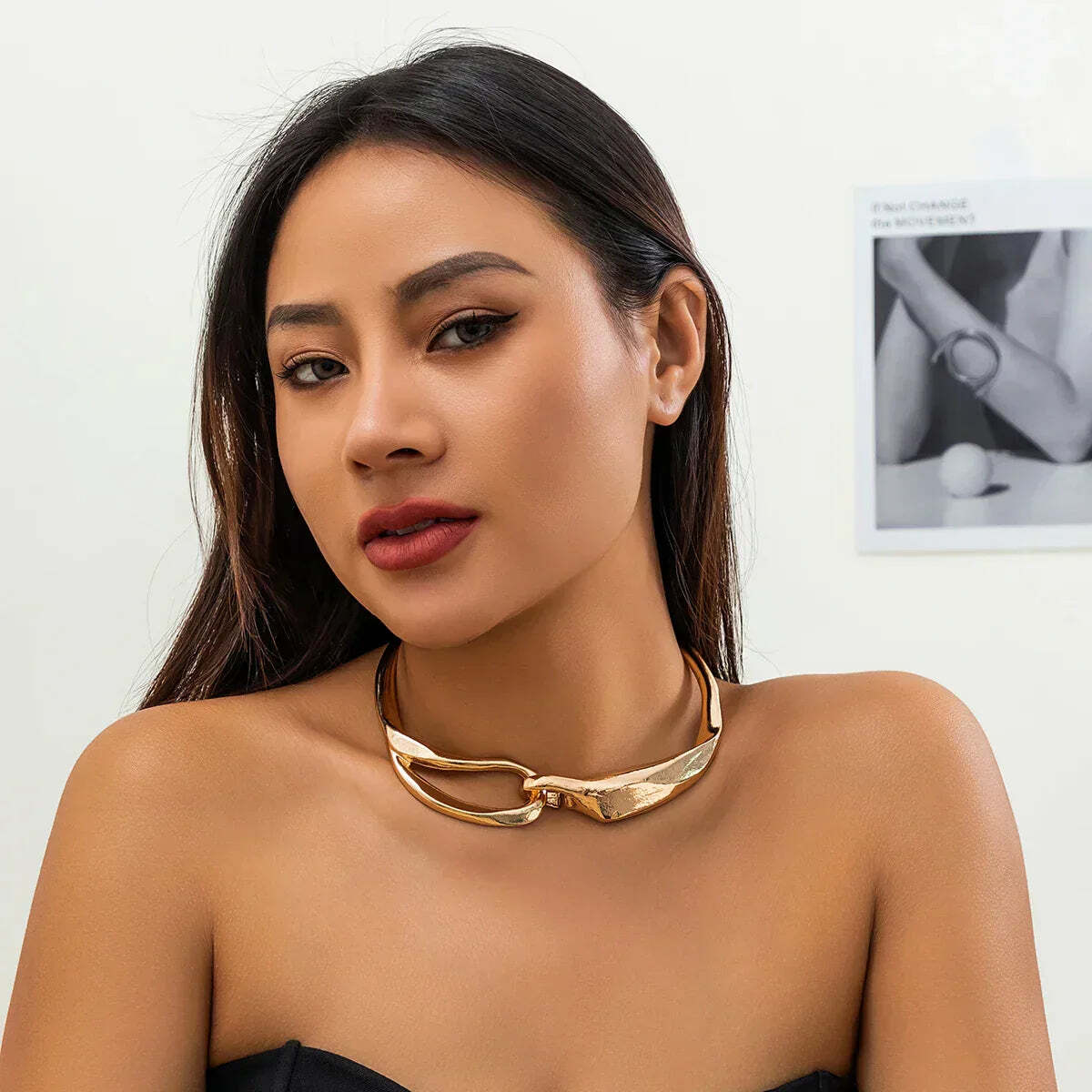 The flowing lines of the necklace, reminiscent of a molten design, add a modern twist to the classic elegance. It blends seamlessly into any look and adds a touch of sophisticated grace to your style.